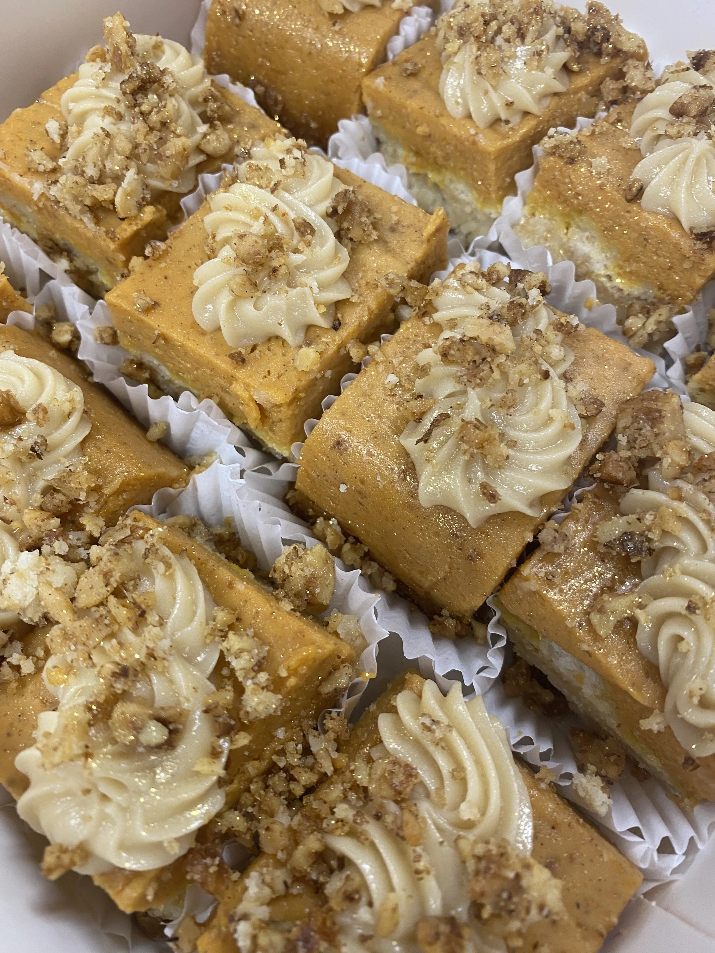 Made from scratch in house, with quality ingredients. Topped with your favorite frosting our CHANTILLY. We heard y’all really enjoyed. Mini + Standard Cupcakes available.